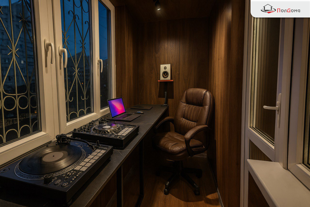 Задача — превратить обычный балкон в тёплое и функциональное пространство для занятий хобби. Нужно было усилить теплоизоляцию и подобрать отделку, устойчивую к перепадам температур и регулярной эксплуатации.